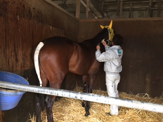 とっても暖かい小春日和です 風が強いので厩舎の扉は開けていませんが、結構な暖かさ お馬さん達も全頭馬服を脱いでおります パリちゃん(パリーナチャン) 久々に全裸を見るとなんだか気恥ずかしさが・・・ ナデちゃん(ナデシコハート) エミネちゃん(エミネントフラワー) ▼草をほおばるウィンちゃん(リバーウィン) ウィンちゃんは汗っかきなので普段から他馬に比べて薄着ですけどね タキノちゃん(タキノアクトレス)もぐもぐもぐ・・...
