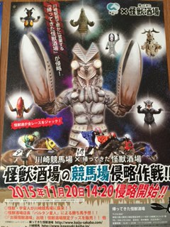最終日はなんと川崎が怪獣に占拠されましたナデちゃん(ナデシコハート)のレース名は「メトロン星人」だそうですそしてコスプレ誘導馬ちゃんには角が生えてしまいました怪獣酒場バージョン装鞍所を見つめる怪獣誘導馬川崎のゆるキャラかつまるくんがガッツリ☆バルタン店長のトークなどをレポートしてくれましたので、残念ながらみれなかった皆様はどうぞこちらへhttp://www.ab.auone-net.jp/~k_k_club/151120/151120-kaiju-sakaba-top.htmlさらに高橋華代子さんがつづる南関魂にもレッドキングやら、バルタン店長やらのたくさんレポート...