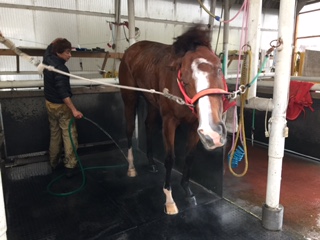 エミネちゃん(エミネントフラワー)競馬に向けて熱烈調教中ですざぶざぶ洗って貰いますあれ? ちょっとおかしい・・・エミネちゃんの左足(写真右足側)の蹄鉄が外れています調教中に落としてしまったらしいです幸いこの日は放牧地の丸い中でしか走ってないのですぐに見つかりましたその日のうちに付けてもらってOKもう落とさないでねJUGEMテーマ:馬