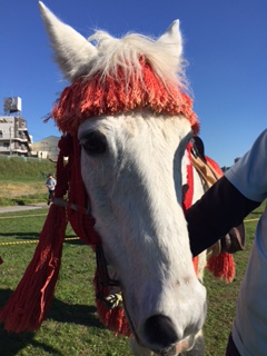 多摩川はとっても天気です空がスッキリ☆なんでうっすら富士山も見えます そんな晴天の多摩川にお馬さんがやってきました 多摩川小学校60周年記念式典で武田流の方々が流鏑馬を披露してくれました準備しおわりまして待機中のお馬さん達ですこちらは世田谷馬事公苑等でも沢山流鏑馬を披露しているジョンウェインさんこちらはココちゃん、バンバちゃんとサラブレッドの間に生まれたサラバンバちゃん こちらはメイちゃん思春期女子なんと今回が流鏑馬舞台2回目メイ:ん?メイ:これなに?食べられる?食べられませんお子様...
