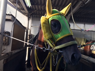 本日は競馬前の全休日なので、中間前日に追い切りを行いましたナデちゃん(ナデシコハート)は初めてチーク(視界を狭くする道具)を付けて調教ですナデ:頬がなんか気になるわぁナデ:やだ・・・横が見えないじゃないそういう狙いの道具ですから・・・リバ男君(リバーケイティ)も中間追い切りですリバ男君は飼い葉桶を手前に置くと、外にこぼして食べられなくなってしまうので奥の方へ入れるようにしていますリバ:ねぇねぇ!飼い葉桶ど〜こだ?ん? どこに置いたの?あれ?この山は・・・飼い葉桶発見!・・・って、そんな遊びは求めて...