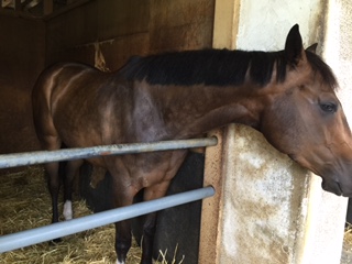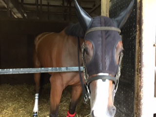 今開催から復活のウィンちゃん(リバーウィン)身体は冬毛がだいぶ抜け替わりまして、かわりに健康を表す銭斑がバッチリ☆お顔も一時期パンダっぽくもなっておりましたが、こちらもほぼ無くなりましたやっぱりよく調教してよく食べているからかなぁ・・・・・・ってウィンちゃん?ご飯の半分が外に出ちゃってるし、そこはたぶん届かないよ・・・ウィン:アタシが食べられるようにペー(ぺーぺー厩務員)とって!仕方のないお嬢様ですねぇ はい、綺麗に飼い葉桶に入れて、奥に置きましたよウィン:うむ、ごくろうご飯大好きリバ男(リバーケ...