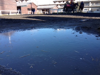 今日も寒いです、運動場の水溜りが凍ってました・・・写真を撮った時はだいぶ溶けてましたハロー掛けした馬道がほぼ綺麗に残っております 水がところどころ凍ってます、もうちょっとで馬場が使用禁止になるところでした いつも使っている円馬場の真ん中には大きな水たまりです完全なる水郷障害ですね・・・でもラッシュ君(ベルモントラッシュ)嫌がる事なくバッシャ☆バッシャと入ってますなぜラッシュ君一頭かといいますと、調教師の飛行機が雪の為飛びませんでしたなので順番に一頭づつで調教です JUGEMテーマ:馬
