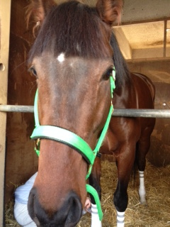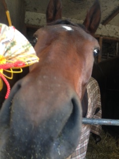 寒いので朝焼けがとっても綺麗です全ての調教が終わった朝10時過ぎにメンコをがぶったお馬さんが一頭ウィンちゃん(リバーウィン)です先日能力試験に合格したので、共済(お馬さんの保険)への加入審査をして貰いますいつもはお馬さんの特徴を見てもらう為にメンコを額の辺りまで上げているのですが、だいぶ前に首の辺りに埋め込まれているICチップで実馬か確認出来るようになったのでメンコはそのままで良くなったそうですウィン:便利になったわねぇ〜素早くお馬さんの確認が出来る為のICちっぷですからねぇピノ(リバーピノチャン):じ...