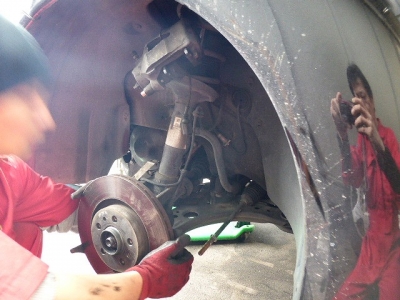 JUGEMテーマ:ハートロードの自由奔放日誌\(^o^)/赤い彗星が2人。。。マニアも知らない衝撃の事実。。。しかめっ面でございますなかなかピントが合わなかったんだものドライブシャフトブーツをおNEWに取り替えているトコですココの部品はですねぇ。。。え〜と・・・あの写真どこ行ったっけ・・・コレコレしゃちょーのやつがいつも仕事中にアタマに乗っけてる黒い物体です・・・あんまりやり過ぎるとマジでクビになったりして。。。しかし、みなさまがご支持下さればへっちゃらでございますムハハハハ・・・ある程度走行距離がでて...