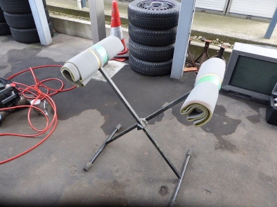 JUGEMテーマ:ハートロードの自由奔放日誌\(^o^)/さらに続きでございますこの台(?)にですね。。。おNEWの生地を貼り付けたルーフライナーをしばし時間をおいた後に。。。ひっくり返してのっけます。・・・この方が作業がやりやすいもんで写真の右側で何かしてますでしょ?これはですね。。。こんな感じにカットしていますこの生地の出っぱりをライナーの裏側にめくり込んで、これも接着してしまいます写真では見えてないですけど、接着剤を霧状に噴霧しているところです一片一片丁寧にめくり込んで接着していきます・・・ピンクの...