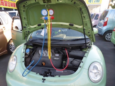 JUGEMテーマ:ハートロードの自由奔放日誌\(^o^)/前期型のニュービートル達にワリと発生するトラブルの1つが、エアコンが効かない・・・という症状。ま、これはニュービートル達に限ったハナシではなく、ビーエムやベンツもろもろ、国産車でも新車からの年数がけっこう経過した車にフツーにおこりがちです。そのへんはやはり機械ですからね。。。家庭用のエアコンと一緒で永久不滅に使えるワケではありません。経過年数的に仕方ないです。予防整備的に事前におNEWに交換してしまうのが理想ではあるのですけど、エアコンのガス漏れ...