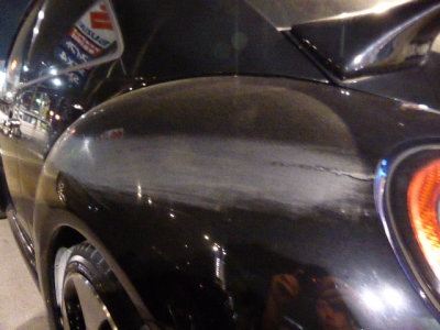 JUGEMテーマ:ハートロードの自由奔放日誌\(^o^)/さて、ガラス交換に続いてもう1つ。。。左側面からリヤハッチに渡っているこのキズを、なんとかできないものかと、1回磨いてみましただいぶ目立たなくなりましたかね。。。・・・ふむ。。。塗装面を越えて下地が出てしまっているトコはどうにもなりませんけど、これなら、とりあえずはドア1面のキズを直す程度にとどめておいても良いんじゃないかな?ぱっと見目立たなくなったし。。。車検整備の方を進めていって、概算を出してみてオーナー様と相談ですね。。。それでは。。。シャ...