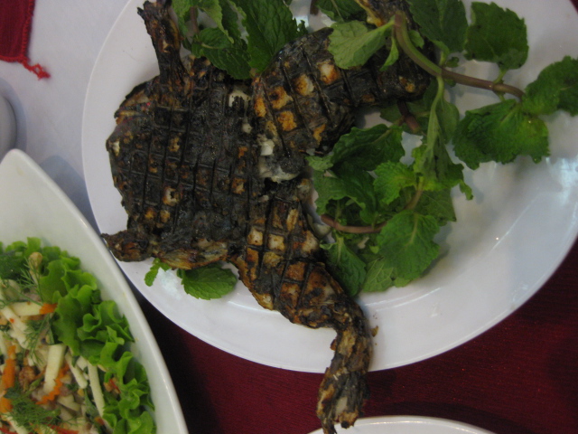 JUGEMテーマ:雑学JUGEMテーマ:海外旅行 総合JUGEMテーマ:アジアのニュースJUGEMテーマ:日記・一般JUGEMテーマ:ベトナムスタッフとベトナム料理に行きました。ベトナム料理にも色々地方料理が有りますが、この店は何処の料理かは聞きませんでした。 注文はすべてスタッフ任せで、途中この姿は【かえる】メニューにはカエル料理にねずみ料理もありましたが、今回はねずみ料理は勘弁してもらいましたその他魚料理は、1匹のから揚げ、もちろん川魚で、食べて後は味は、どちらも淡白な味でした。値段は安かったです。