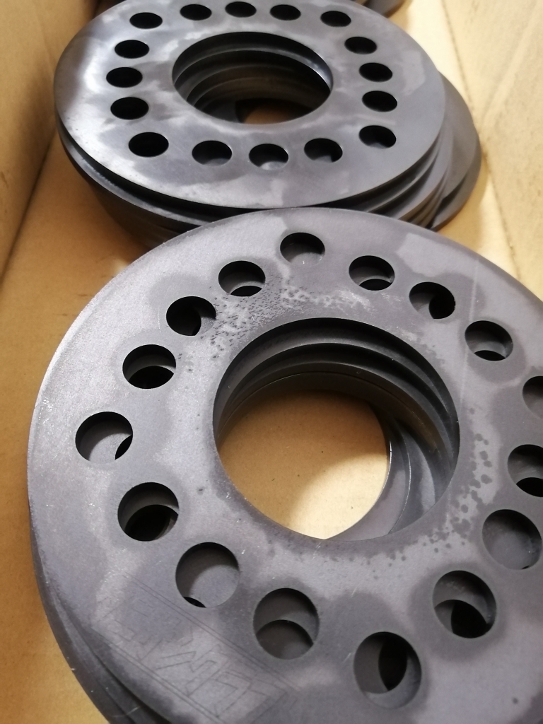 JUGEMテーマ:修理・カスタマイズ タニサンクラフトのオリジナル、 スチールホイール用スペーサー、 自分用に作ったけど枚数が少しだけだと高くつくので、 ちょっと多めに作って残りは頒布しようという経緯であったのは以前に書いた通り。 でも…そんな簡単にはいかなかった、 なぜか売れるのは5mm厚の物、 しかも在庫が2枚にまで減ってしまったところに購入のお問い合わせを3件頂いて…。 これにて売り切り終了してしまうと場合によっては3?厚の物が不良在庫に...