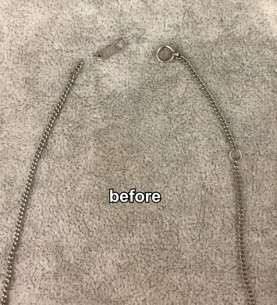 プラチナ ネックレスの丸カン部分が外れてしまっています 丸カン(プレートとネックレスを繋ぐ部分)が開いて外れています 外れにくくする為に、丸カン部分をロー付けしました 修理完了です これからも、末永くご愛用ください ネックレス切れ修理(ロー付け) 1,500円(税別)です &nb...
