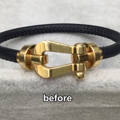 K18イエローゴールドのブレスレットにダイヤモンドの埋め込み依頼です 【アフターダイヤモンド加工】 Aランクの最高級のダイヤモンドメレを2列に埋め込みました ドレスアップ完了です 加工料金150,000円(税別)です ※腕時計のアフターダイヤ加工も承ります。 ジュエリー&ウォッチのことなら何でもお気軽にご相談ください 切れたネック...