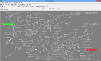 JUGEMテーマ:カーメンテナンス タービン周りの作業記録です。 Z32の場合ボンネットを開けてエンジンルームをながめてもタービンは全く見えません。下にもぐれば見えるのですが一部分が見える程度です。今回、いろいろ部品を外してタービンの全体像を初めて見たきがします。とはいえ取り外しまではしてはいません。 オルタ、エンジンマウントブラケット外した状態でフロント側から右バンク(運転席側) エアクリからのパイプを外すと羽がなんとか見えます。吸い込み口がオイル?カーボン?のようなもので渦巻き状に汚...