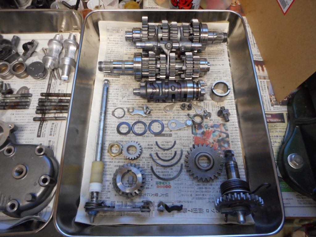 JUGEMテーマ:バイクメンテ 期間が開いてしまいましたが、やっと部品洗浄・点検も終わり 必要な交換部品の発注や内燃機屋さんへシリンダーボーリングの 依頼を終えて組立準備をして行きます。 ミッションは念のため分解点検しましたが問題ありませんでした。 クランクケースもバリ取り、オイル通路の清掃を行いました。 今回より洗浄液を変えてみましたがこちらの方がよいですね。