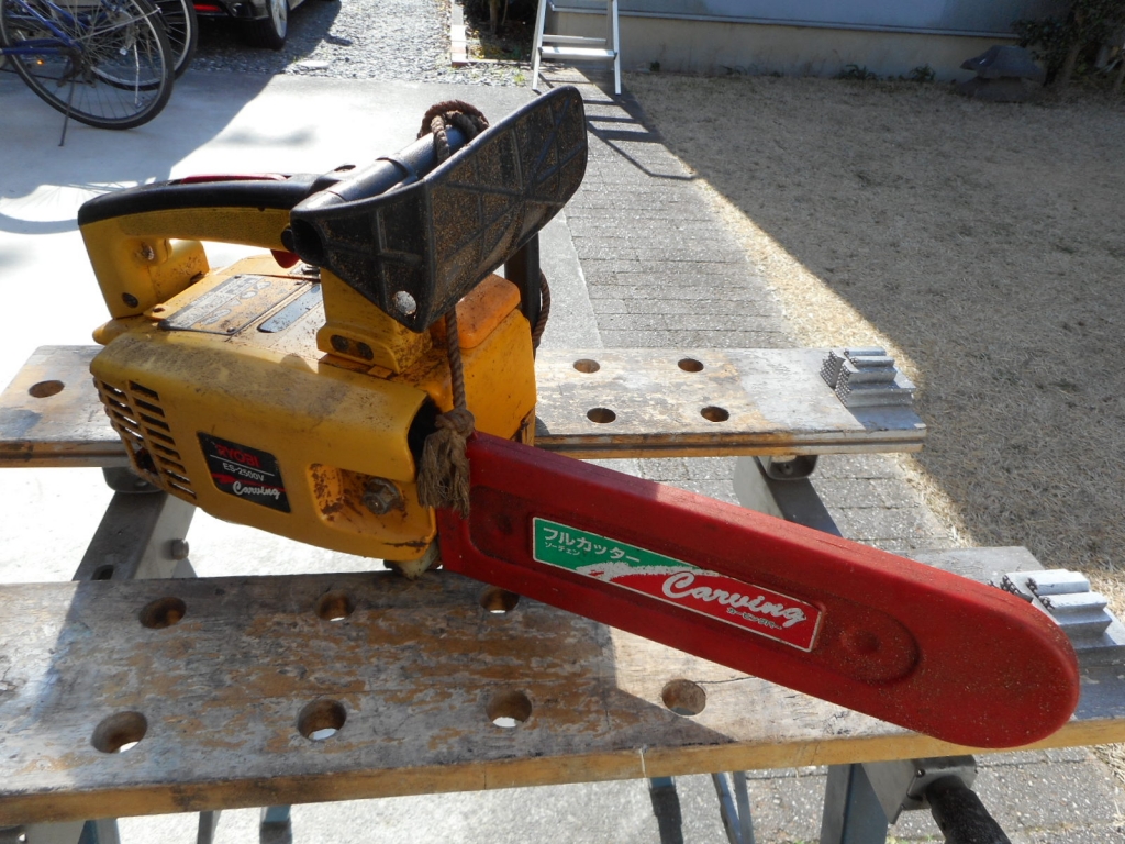 JUGEMテーマ:バイクメンテ 今日はチェーンソーのリョービES-2500Vを修理をします。 知人より動かないということで持ち込まれました。 家庭用ののチェーンソーや草刈り機など2サイクルエンジンの 不動の原因は長期保管によるキャブレターつまりによるものが ほとんどだと思います。 使用後にタンク内のガソリンを抜き、最後にエンジンを始動して 停止するまで動かしてから保管するとよいです。