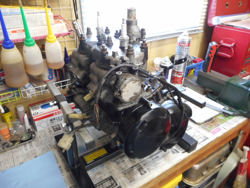 JUGEMテーマ:バイクメンテ 今回はヤフオクにて実働エンジンとして購入したエンジンを リビルドしていきます。 分解の前にエンジンスタンドにセットしてザっと清掃します。 腰上から分解していきます。 シリンダーヘッドの状態は真っ黒で濃い状態です。 シリンダーは焼付きた状態です。 右側のシリンダーの方が状態が悪いですが深い傷が無いのが幸いです。 右側のピストンはスゴイことになって...