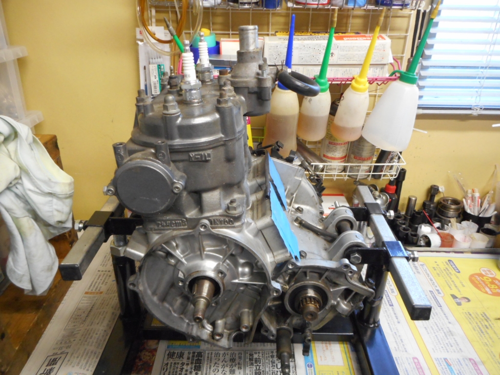JUGEMテーマ:バイクメンテ シリンダーは各ピストンに合わせて規定値にボーリングしてあります。 リングの面取りを行いピストンに組込みます。 YPVSバルブをシリンダーに組込み作動を確認します。 シリンダーを組込み、左右のデッキの高さを確認します。 ピストン・シリンダー組込み完了 シリンダーヘッド組立完了 ...