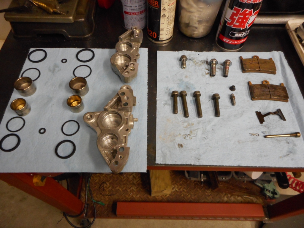 JUGEMテーマ:バイクメンテ 今回は車検整備内容はフロントフォーク・F/Rブレーキキャリパー・ F/Rタイヤ交換・F/Rスプロケット・チェーン交換予定です。 その他にも不具合があれば整備予定です。 まずはフロント・フォークですがダストシールにヒビワレがあります。 早速分解していきます。 インナーチューブのサビ取りをして曲がりをチェックしてOKです。 スプリングの自由長は規定値内でした。 スライドメタルはキズ・摩耗もなく良好 オ...