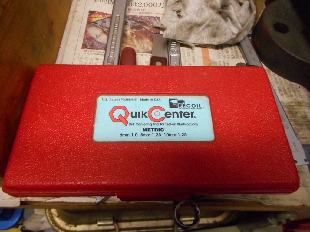 JUGEMテーマ:バイクメンテ 折れたケーススタッドボルトの続きです。 折れたボルトの取除く方法につきましては雑誌やネット等に情報が 溢れていますので、今回のケーススタッドボルトを取り除いた 方法をご説明します。 まずは折れたスタッドボルトの中心にポンチでドリルセンターを マークする。 これがもっも難しく重要なポイントなので慎重に行ってください。 自分は過去の失敗を経験にこれを使用しています。 リコイルのクイックセンターです。 こ...