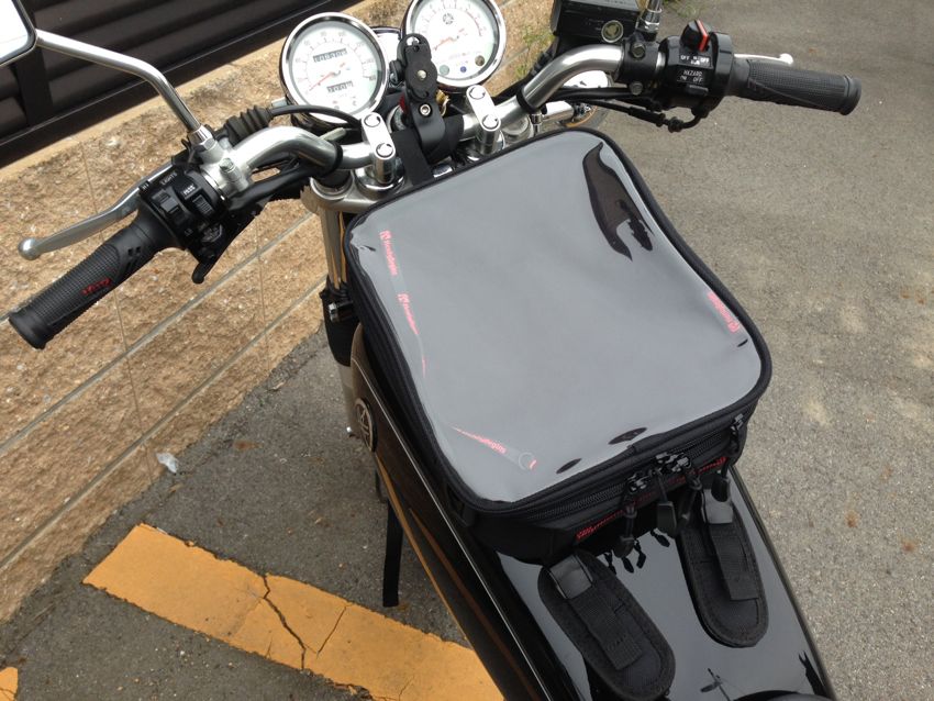 一週間後に始まる九州ツーリングに向けて、地図やアイテム購入に精を出すわたし。 しかし、いくらツーリングマップル熟読しても、走ってて見れないと意味ないじゃないかーということで タンクバッグを購入しました。 リング式のツーリングマップルが綺麗に収まるサイズがなかなかなく、お店の棚を隅から隅まで探し ようやく出会ったのがHenlyBeginsの「タンクバッグ MIL B5」! ごちゃごちゃした飾りもなく、すっきりしたデザイン。 スリムなSR400の外観を損ねることもなさそうだったので、これに決めました。 実際につけ...