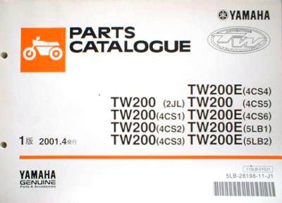 純正パーツを取り寄せる場合 YAMAHAの公式ホームページの【部品検索】にて パーツカタログを閲覧できるけど (ちなみにsafariは未対応。) sessionかなんかの関係で1ページしか閲覧できないし、中断するし、混み合うし、見にくいし、時間かかるし、適合パーツが車種別にしかみれないし… ヤフオクで落札しちゃいました。 [TW200 パーツカタログ](¥300) ≫> TW200 パーツカタログ | YAMAHA TW200E ☆ これ、tw225に変更する前の 最終版だからtw200の適合パーツが全て分かります...