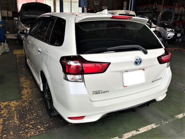 JUGEMテーマ:自動車整備 こんばんは♪ 先陣を切ってのご到着! カローラフィールダの話。 昨年よりご相談をいただいておりましたお客様。 地元が一緒で古い仲でございます。笑 グレードはトップの「W×B」。 軽自動車が結果イロイロ不便な為、普通車を検討。 私の非力なアドバイスを交えフィールダに決定。笑 お客様の第一候補でもありました。 走行距離は70,000キロで車検を2年お付...
