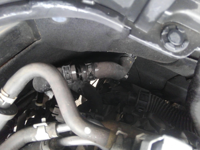 エンジンチェックが点灯して、調子悪かったとのことです。 診断機を当てると、オーバーヒートのコードでした。 リザーバー空っぽです。 どうやら、ヒーターホースのジョイントが樹脂で割れたようです。 部品交換して、エア抜きして、完全冷却して明日にもう一度、冷却水足して、様子見てもらいます。 ラジエーターは、オールアルミで強いのに、樹脂の部品があっては、弱いです。 金属製でいいと思います。