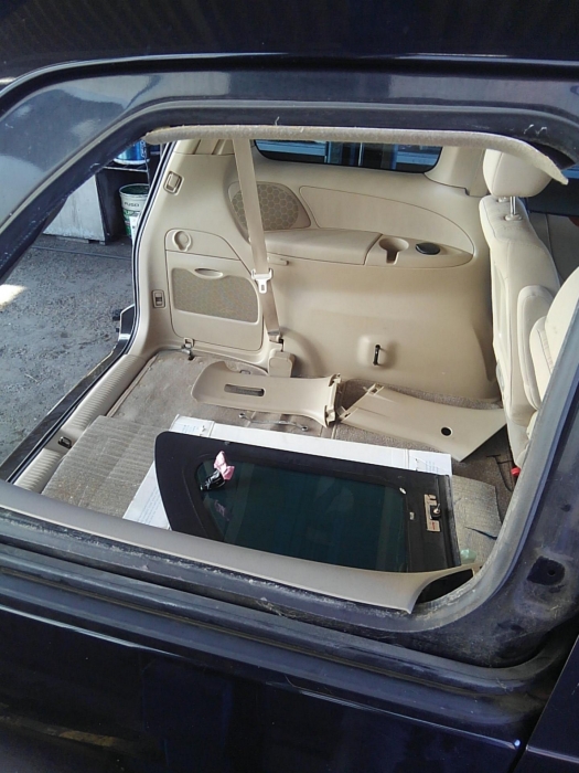 JUGEMテーマ:自動車整備 このクォーターガラスは、後ろ側が少し開きます。 その場合は、普通はフロント部がヒンジになり、ガラスとの固定はボルトナットになります。 でもこのマイナー後のMPV は、張り付けの単なる金属プレートです。 内側からの押す力には、弱いです。 このプレートが、ガラスから剥がれてました。 ガラス交換が安心ですが、モールも入れると5万くらいします。 ガラスやサンに頼み込んで、ノークレームで張ってもらいました。 このままの状態で、一晩乾かします。 位置決め...