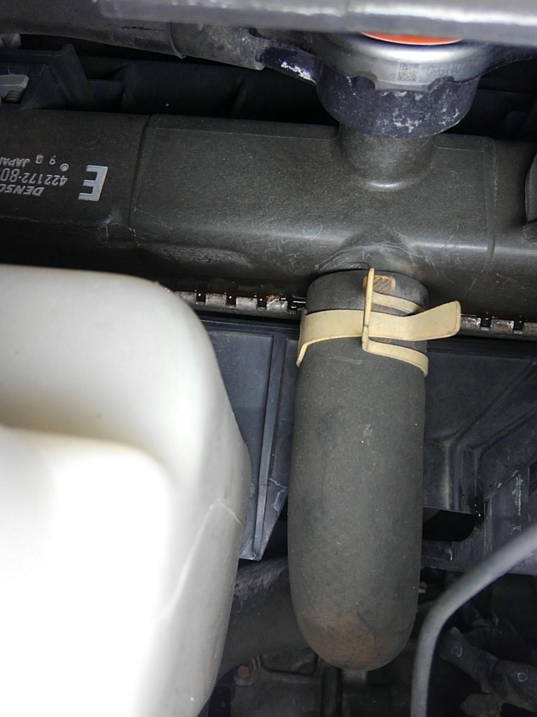 よくある、アッパータンクの劣化による、水漏れです。 新しい車のときは、アッパータンクだけの交換もありますが、 今回は、プラスチックがかなり劣化しているので、新品交換です。 バンパー周り外しました。くたびれています、ピンボケです。 でも年内にお返しするために、部品が来るまでに外しておきます。 朝一に、部品発注してあるので、何とか年内納車できそうです。 プラスチックの劣化が激しく、ホース抜こうと引っ張ったら、差込口割れました。  ...