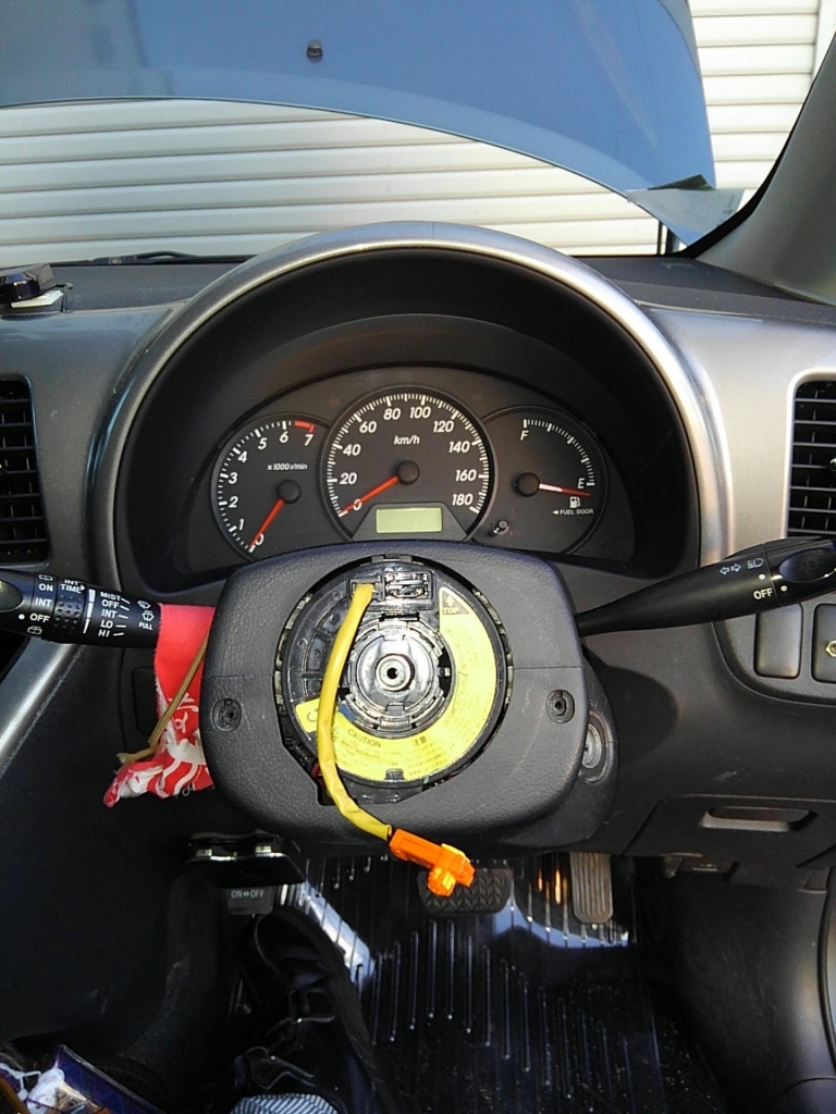 初代ウィッシュの15万キロ弱です。 ヘッドライトが、ローもハイも点かないと言ってお客さんが見えました。 その場で、バルブやヒューズなどを点検しても切れていません。 しかも、パッシングだけは、生きています。 ここまでくると、おそらく、ディマースイッチですが、返品が効かない部品なので お預かりして、スイッチを点検しました。 結果、スイッチの不良でした。 部品は、何とか入るとの事なので、ハンドルと、エアバック、ス...
