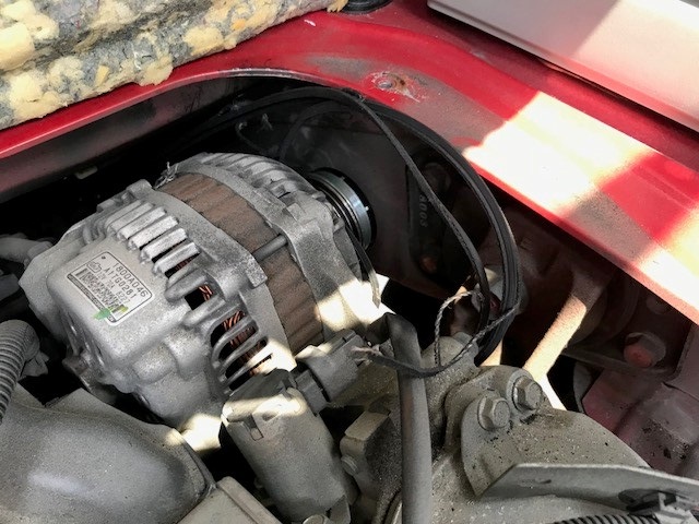 JUGEMテーマ:自動車整備 こんばんは♪ ちょっとヒヤッとしたレッドアイの話。 お酒じゃないですバイ。笑 チェックランプがフル点灯して止まったアイ。 レッカー搬送されご到着。 まずバッテリーを当店にある中古品にテスト交換。 他のランプは消えるもバッテリーランプだけが消えません。 ・・・というのもこの裂きイカ状態のベルト(´゚д゚`) オルタネータのファン...