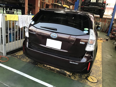 JUGEMテーマ:自動車整備 こんばんは♪ プリウスαの話。 私が公私共にお付き合いのあるお客様。 以前よりご相談をいただいておりコチラのカラーに決定! 走行距離も年式も問題ない。 グレードはトップに相当する「Gチェーンブラック」♪ しかし序盤からトラブルが・・・。 関西から無事到着。 下見を入れたこの車、程度良好のお墨付き。 のはずがナンじゃこの穴は!!!! クリアランスソ...