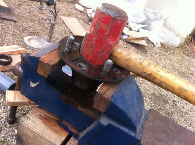 左前のハブベアリングの交換。難関はベアリングレースの打ち抜き。プレス機も治具もないのでガン!ガン!!といきました。 交換前のベアリング異音を発生してガタガタでした。交換後は気持ちよく転がるようになりました。 JUGEMテーマ:軽自動車・コンパクトカー