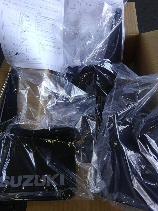 JUGEMテーマ:ジムニー 赤のマッドガードが、派手だと思う人や 樹脂色のバンパーに合わせて黒の純正を付けたときの参考にして下さい。 フロントのマッドガードは、ライナーの下をカットします。 ライナーのクリップを外して、2ヶ所にタッピング用の固定金具を差し込みます。 ここを、カットします。 あとは、マッドガードをタッピング2本と、 クリップで固定します。 リアは、バンパーの横の穴に、タッピングの固定用のプレートをさして、 バンパーの下のけがき線...