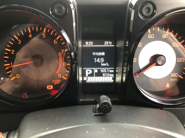 JUGEMテーマ:ジムニー 新型ジムニーJB64 4ATの実燃費レポートです。 納車10日目、613kmの実燃費は・・・ これです! 総走行距離:613kmは・・・ごらんのとおり 14.9km/L! 結構、いいでしょ! フツーの町乗りで、2,300〜2,500rpm・車速60〜65キロ前後での走行です。 もちろん、スタート時などは3,000回転以上は回っていますが、これくらいの回転数だとかなり燃費はいい!という判断を素人なりに出しました。 今日は、エアコンを常時使用しましたが、この数字ですので上出来...