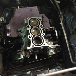 JUGEMテーマ:ジムニー ジムニーJB23のK6エンジンを壊してしまったので、ワゴンRの中古のK6エンジンをオーバーホールして載せるプロジェクトも後半になりました。ブロックも組み立てがほぼ完了しました。 エンジンを台上で組み上げてから、チェーンブロックを使ってエンジンルームに押込めたいのですが、器具はないしガレージの大きさにも制約が有って難しいのです。 そんな訳で、エンジンを上下に分割して載せます。ブロックにウォーターポンプや各種ステーを取り付けてエンジンルームにポイと放り込みます。アルミブ...