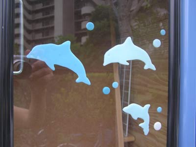 JUGEMテーマ:ウォークスルーパン・・・ と言うわけで、シートを貼る際に使う空気抜き用のへら、中性洗剤を入れた霧吹きを持って家族全員で暑い中、BUBUちゃんの前に集合〜。緊張の一段目。まずは車体全体に洗剤液を吹き付けながら、文字の貼り付いた粘着透明シートを台紙からはがします。その後、透明シートから文字を車体に移していきます。すぐに文字が貼り付いてしまわないために洗剤液を吹き付けているわけですがうっかりすると文字が車体の上を滑ります。位置がずれないように、丁寧に丁寧に。何度も透明シートをかぶせなお...