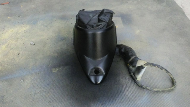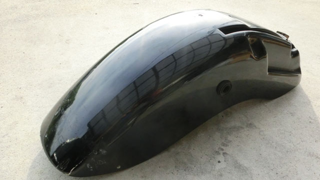 続き。 ある程度形が出来てきたら、表面処理をしていきます。 こういった気泡や欠け箇所をしらみ潰しに修正。 これでほぼ完成。 テールランプの取り付けには、もともとあるこの穴(たぶんクリップ用?)を利用します。 ただし取り付け面の角度が違うので、フェンダー側をこれに合わせます。 切り込みを入れて、ヒートガンで熱しながら任意の角度まで上げてやりました。 強度によっては補強することも考えましたが、けっこう厚みがあるのと、テールランプの重さを考えるとこれで十分そうです。 ボディ...