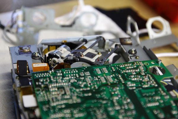 JUGEMテーマ:HONDA メインのブログが調子悪くて、画像が貼れなくなったので・・・ とりあえず分解中の図。 音飛びが激しいとの事なので、ラバーマウント8箇所の交換&ピックアップのクリーニングを。 画像はラバーマウントを分解した後の状態、ドナーのマウントの方が程度が良いので交換する事に。 ピックアップのクリーニングを開始。 分解してすぐの状態だと、ピックアップが隠れているので、 指差している部分のギアを手動で回転させて、ピックアップが見える場所まで移動。 この状態でクリーニング、これは...