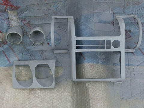 続き。 パネル本体からメーターホルダ部分を取り出します。 新規製作部分だけだと強度が不安だったので、オーディオパネル上端をカットし、一緒に取り出しました。 これをベースにパテを盛って削ってのいつもの展開。 金網を入れたのは大正解だったようで、削っている際もびくともせず、安心して進められました。 メーターパネル部、ほぼ完成です。 次にメーターホルダー本体も加工していきます。 後端がダッシュボードに干渉するようだったので、まずはカット。 パネル部分を養生した上でホルダーを仮付け...
