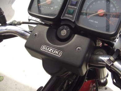 ようやくフロント周りの作業に取り掛かります。 ハンドルを取り外しましょう。 ハンドルクランプ外し。 メーター類は下から見てこのボルトを2本と配線を外せばおkです。 フロントフォークを外しにかかりますが、GSはトップブリッジの上から共締めするようにフォークのキャップが取り付けられています。 なので、まずはこれを外さないとフォークも外れません。 フォークに関してはGNとの互換性はまったく無さそうです。 キャップを比較。 そもそもGNのフォーク径32mmに対し、GSのフォーク径は30mm。 何故...