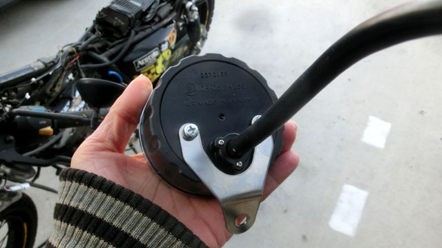 続き。 CA080にはアルミステーが付属します。 もちろんこれを使って取り付けることも出来ますが、トップブリッジの上に飛び出る形となり、センスの欠片も感じない外観になってしまいます。 エスパーダのデザインからすれば、トップブリッジとツライチになるのが理想でしょう。 そのためにはメーターの厚み分だけ、トップブリッジより下に取り付けなければなりません。 CA080が薄手のデザインとは言え40ミリ以上の厚みがありますので、これはけっこう難しい課題です。 やはり、ステーを一から作るのが手っ取り早そうです...