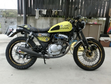 実は気になっていたのですが、新しいタンクにしてからと言うもの、微妙にタンクが水平ではなくなってしまいました。 タンクの個体差なのか何なのかよく判りませんが、やっぱり仮にもカフェレーサーを名乗るなら水平位置タンクでないと!ってことで手直ししていきます。 関係ないですが、MOTOBATTのステッカー、いきなり剥がれかけています。 しかも色褪せ・・・。 嫌な予感は的中、ただの紙ステッカーでした。 orz バイク用パーツの付属ステッカーに紙はやめてくれよ・・・。 それはともかく、タンク位置の修正で...