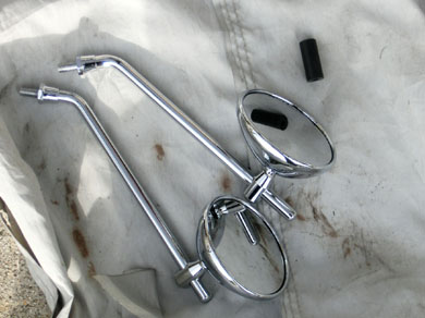 続き。 買ってきたのはGTラウンドミラー、メッキタイプ。 エスパーダに付いているやつの色違いです。 何せデザインは妥当だし、位置調整はとてもフレキシブルだし、お値段は安いしで文句ありません。 エスパーダでも大丈夫だったので、きっと違和感なく収まることでしょう。 早速取り付け開始。 じゃん!これでほぼ完成です! うん、良い感じ! そして今度は気になってくるリア周りと灯火類のもっさり感www 横から。 やっぱりハンドル変えると他とのバランスが崩れ始めますね。 ぴろみん次第...
