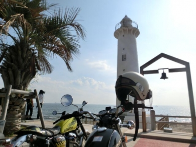 続き。 お次は半島の先端で折り返して北へ、野間灯台。 恋人たちの聖地で将来を誓い合う2台(笑)。 ここは砂浜まで降りられるので、童心に戻ってはしゃいできました。 最後に更に北に向かい、蒲郡は「かねふくめんたいパーク」。 ここもちょっと前に来たばかりですが、一休みするには良い場所です。 まあ、ここも何があるってわけでもないわけで、定番のめんたいソフトでのんびりと。 あ、ジャコソフトに比べて、やっぱりこちらの方が洗練されていると思いますです。 ちなみに長時間ここにいると、...