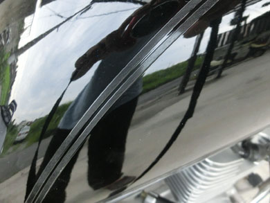 いよいよルナフロール、最後の仕上げにかかります。 気なるタンクから取り掛かりましょう。 予定ではタンクのラインの上から、新規のラインを貼って行くつもりでしたが、簡単に剥がれそうだったので剥がしてしまうことにします。 そして当然のように残る段差。 GNはラインを剥がすとこのように、ウレタンクリアの断層が出来てしまいます。 研磨することで段差が消えないか試しに行ってみましたが、ちょっとやそっとじゃ消えませんね、これ。 大変そうなので諦めました。 予定通り、この上からラインを新規に貼ることに。 ...