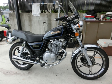 ゆっきーのGN125H、ルナフロールが入庫しましたので作業に取り掛かります。 久しぶりのご対面。 今回はこれまで散々やってきたことですが、ケツ上げ+フロント下げによりスタイリングの変更を行います。 手法もまったくこれまでどおり。 詳しく知りたい方は過去記事読んでね♪ ソルフロIIで使っていたものと同じメーカーのリアサスペンション、330mm。 GNがもともと持っているクラシカルなイメージを崩さないよう、奇抜な色は使わないこととしました。 んで、無難にメッキね。 上:ノーマル 下:社外品 25mmのケ...