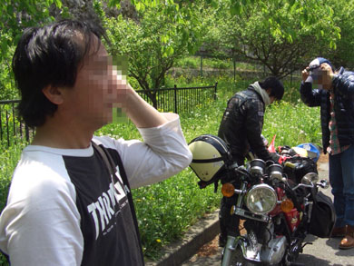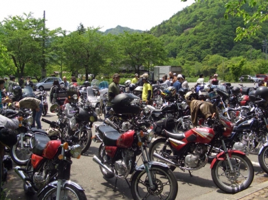 そうこうしているうちに、かなりの台数が集まってきていました。 続々と集まるメンバー、へんなおじさんのGS125”ネオサイクロン号”。 同じくGS125、トモジイさん。 万里パパさんのGN125-2F。 150ccのボアアップです。 キャブセッティングがかなり上手くいっているらしく、絶好調のようです。 羨ましいですなあ・・・。 としやさんのJC125−9A中華カタナ125。 おおっ!この時を待ちわびたぞ! シュガーさんとGTさんのツーショット。 それにしても今日のシュガーさんはおかしい。 ...