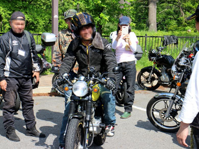 61台というかつてない台数の中から、見ておきたいバイクに的を絞って調査開始です! 時間はあまりないのだ! やっぱ気になるのはバックステップなんですよねー。 つよっこさんの2Fのバックステップ。 一応、2FやEN、GS等にはポン付けっぽいです(※Hには付きません)。 しかしそこはタオバオ品、まったくのポン付けなわけはなく、やはり苦労された跡が伺えますね。 んー、でも今まで見た中では一番しっくりくるかな・・・? こちらは今年もやって参りました(笑)、hideさんのGN125Hとバックステップ。 さあ、今...
