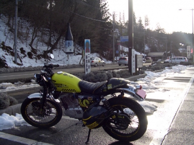 お山でのテストは続きます。 今回はそろそろ雪も溶けて大丈夫かな?といつものコース、そしていつもの道の駅に立ち寄りました。 しかしこの辺りまで来ると路肩にはまだまだ雪が残っておりました。 路面に残っていることはありませんでしたが、それでも至るところが濡れており、けっこう神経をすり減らしましたね。 5ヶ月前に来た時の写真と比べると感慨深いものがあります。 そんな中、すごく良い音をさせながら1台のバイクがすぐ近くに停まりました。 見るとドリーム50! でも音からして明らかにボアアッ...